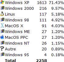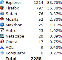 rigolo ;) vous avez pas mal de visites... Rien à dire si ce n'est que OS et navigateur sont inversés ;)