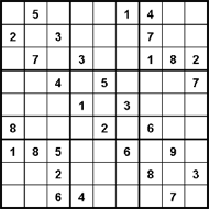"Sudoku est un puzzle à chiffre. Le but du jeu est de remplir la grille avec des chiffres allant de 1 à 9, en partant de certains chiffres déjà disposés dans la grille. La grille est généralement composée de régions de neuf carrés 3×3 formant une grille 9×9 (voir l'exemple ci-dessus). Chaque ligne, colonne et région ne doit contenir qu'une fois chaque chiffre. Le remplissage de la grille demande de la patience et une certaine logique. " (Wikipedia).