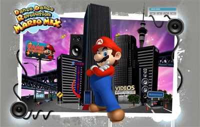 Un petit remix du thème de Mario sur le site officiel de Dance Dance Revolution: Mario Mix.