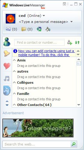Voilà vous pouvez aussi tester Live Messenger. Attention c'est pas bien. Mais c'est pas grave, parce que les nouveautés sont tellement infimes que vous désinstallerez au plus vite cette chose infâme remplie de pub.