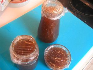 Une fois que la confiture est prise, on la met bouillante dans des bocaux et on stérilise ceux-ci. Si on n'a pas de stérilisateur, on peut retourner les bocaux jusqu'au lendemain.