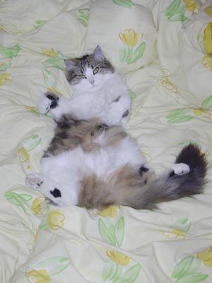 En tout cas c'est une bonne idée cet article. Ca rassure de voir que son chat n'est pas un être bizarroïde contortionniste mais que d'autres sont capables des mêmes galipettes.
