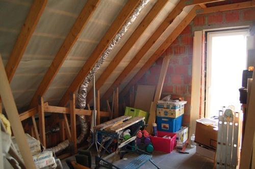 Je me la joue album photo avant/après sur ce coup-ci. Voici donc ce qui sera dans quelques mois la chambre d'Elliott. C'est la partie gauche de l'actuel grenier.