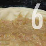 - Après les 45 minutes, sortez la tarte et grattez-là par endroit avec une fourchette. Versez le mélange d'oeuf, de sucre et de lait et réenfournez à la même température pour 20 - 25 minutes selon la cuisson que vous souhaitez pour la pâte.