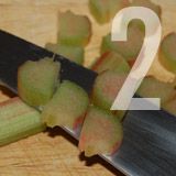 - Pendant que la pâte repose, épluchez et coupez les bâtons de rhubarbe en petits dés