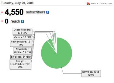 Il y a sans doute un soucis par rapport à Netvibes, j'imagine mal 90% du lectorat venir de là, mais en même temps, 64k est un bon blog, assez ancien maintenant (début 2005) et la mise en place du compteur feedburner n'est pas toute récente non plus... Y a de quoi avoir + de 4000 inscrits.