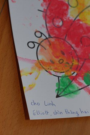 Le parrainage nous coute 10 euros par mois. Rien, donc. Mais ce "rien" va permettre à Linh de continuer sa scolarité, manger à sa faim et prendre des forces pour pouvoir bénéficier d'un traitement médicamenteux. Je suis déjà attachée à cette petite et j'ai hâte qu'elle reçoive ma lettre, qu'elle sache qu'on pense à elle à l'autre bout du monde, qu'elle ait le sourire grâce aux colis que je lui enverrai.... j'ai hâte de recevoir un dessin et les premiers mots qu'elle aura appris à écrire à l'école. J'ai hâte qu'Elliott la connaisse et soit sensibilisé à d'autres cultures que la notre, j'ai envie qu'il ait envie de connaitre le monde.