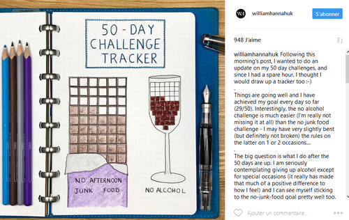 Bon, moi ça m’a saoulée. J’en avais marre de faire des jolies cases, j’ai jamais compris comment mettre toute la journée dans une case, j’essayais d’avoir des cases de tailles relativement identiques mais j’avais des jours hyperactifs, et des jours de glande où je m’autorisais à ne rien faire (j’ai presque culpabilisé de ne rien écrire dans ces cases).